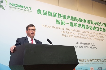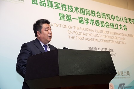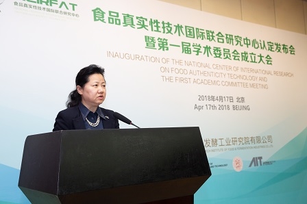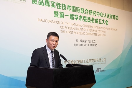 2018年4月17日,“食品真實性技術國際聯合研究中心認定發布會暨第一屆學術委員會成立大會”在中國食品發酵工業研究院召開??萍疾恐袊r村技術開發中心賈敬敦主任、中國工程院及國家食品安全風險評估中心陳君石院士、中國科學技術交流中心董克勤處長、歐盟駐華代表團公使銜參贊、科學技術與環境部主任Laurent Bochereau、國家工業和信息化部消費品工業司鄧小丁處長、國家質檢總局科技司裴曉穎巡視員,國家食品藥品監督管理總局食品安全監管三司高晗處長、國家標準化管理委員會農業食品標準部于茜處長、中國食品科學技術學會邵薇副理事長、中國飲料協會劉元理事長助理、中國食品發酵工業研究院蔡木易院長、德國聯邦風險評估研究所、德國農業研究中心、捷克布拉格化工大學等來自歐盟和國內食品真實性技術相關專家、學者等100余人參加了本次會議。