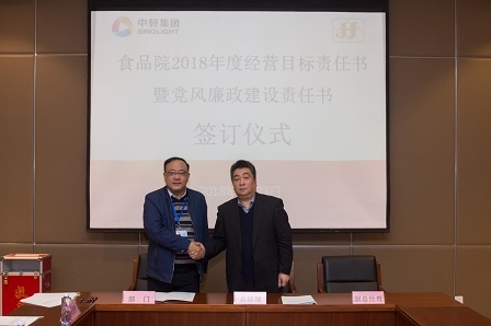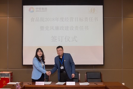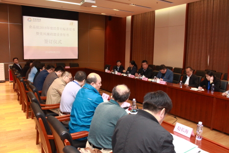 4月23日下午,我院舉行2018年度經營目標責任書暨黨風廉政建設責任書簽訂儀式,院領導班子成員,中層干部參加了簽字儀式,黨委書記董偉紅主持簽字儀式。簽字儀式上,蔡木易總經理代表食品院與各部門、直屬單位主要負責人簽訂了2018年度經營目標責任書,董偉紅書記代表院黨委與直屬企業主要負責人簽訂了2018年黨風廉政建設責任書。