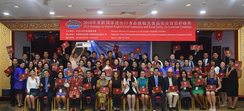 11月6日上午,隨著“2018年葡語國家食品安全檢測技術研修班”結業典禮的成功舉辦,由我院承辦的“2018年‘一帶一路’沿線國家食品安全檢測技術培訓班”、“2018年圣多美和普林西比農業生產技術培訓班(農產品儲藏與加工)”、“2018年格林納達烹飪工藝與營養膳食海外培訓班”等2018年度共31期援外培訓項目順利完成。來自亞洲、非洲、歐洲和拉丁美洲四大洲,包括泰國、尼日爾、亞美尼亞、岡比亞、贊比亞、墨西哥、烏拉圭等66個國家和地區的1084名官員與技術人員參加了今年的研修與培訓,語種涉及英語、法語、葡語、阿拉伯語、俄語、老撾語、柬埔寨語、越南語、蒙古語、朝鮮語、斯瓦西里語等11個語種,級別從司局級到專業技術人員,培訓領域涉及食品安全、進出口食品檢驗、農產品加工、現代農產品供應鏈技術與食品安全管理、生物技術在食品工業中的應用、食品加工及保藏、水果加工及綜合利用、糧食加工及檢測技術、啤酒釀造技術、酒類流通管理及推廣、烹飪工藝與營養膳食、畜禽產品深加工及安全質量控制等多個領域。