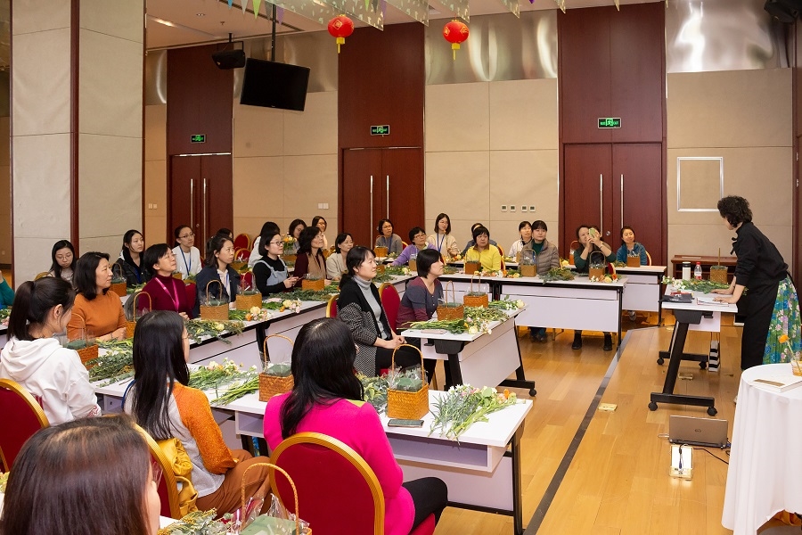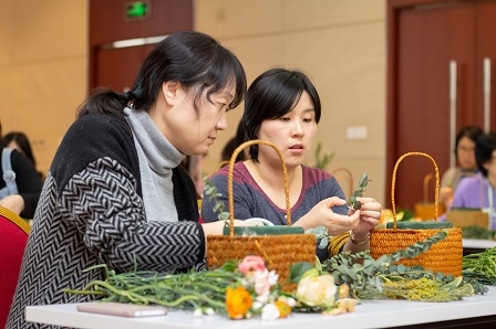 花藝培訓形式多樣,包括花藝講座和插花體驗兩部分,女職工們對此表現出了濃厚的興趣,在老師的指導下,大家完成了一件件精美的插花作品,展現出了美麗的笑容。