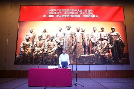 黨課開始前,徐念沙帶領全體與會人員奏唱國歌、重溫入黨誓詞。最后,專題黨課在全體參會人員起立齊唱《我和我的祖國》中落下帷幕。