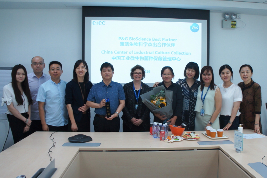 2019年8月6日,全球日用消費品行業知名企業寶潔公司(P&G)在北京舉行頒獎典禮,由P&G全球研發總裁Pamela Schofield博士授予食品院中國工業微生物菌種保藏管理中心(CICC)研發團隊“寶潔生物科學杰出合作伙伴獎”,以表彰CICC在雙方技術合作中做出的杰出貢獻,特別是在“化妝品中霉菌和酵母菌檢驗MSDA方法的建立及驗證研究”項目中取得的創新性工作成績。CICC主任程池教授、常務副主任姚粟教授及中心技術骨干一行出席了頒獎儀式。
