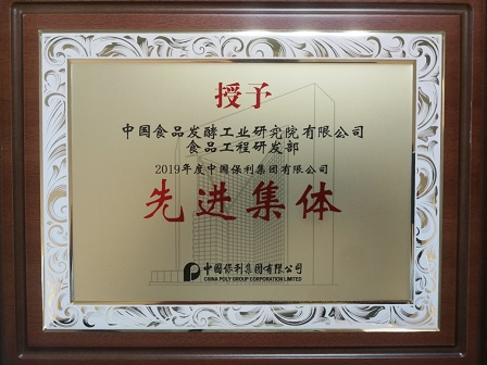 12月27日,食品院所屬食品工程研究發展部獲得保利集團“先進集體”榮譽稱號
