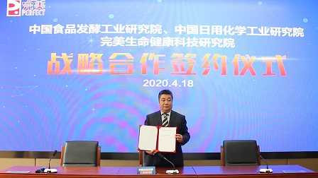 4月18日,食品院、日化院與完美生命健康科技研究院舉行戰略合作簽約儀式,儀式由中國輕工集團有限公司副總經理、食品院黨委副書記、董事長、日化院董事長蔡木易,完美(中國)有限公司董事長古潤金在云端完成簽約儀式,完美生命健康科技研究院名譽院長徐華鋒,食品院副院長魯軍、段盛林,功能肽研發部主任谷瑞增全程參與見證。