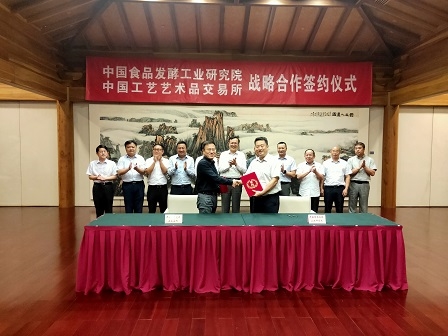 2020年8月18日下午,中國食品發(fā)酵工業(yè)研究院有限公司(以下簡稱“食品院”)與中國工藝藝術(shù)品交易所有限公司(以下簡稱“中國藝交所”)就食品類(醬香型白酒)的籌劃運(yùn)營合作簽約儀式在新保利大廈隆重舉行。保利集團(tuán)副總經(jīng)理劉軍才,中輕集團(tuán)黨委書記、董事長張萬順,工藝集團(tuán)黨委書記、董事長李晶,保利集團(tuán)行政管理中心副主任譚勝,中國工藝集團(tuán)副總經(jīng)理包額爾敦,食品院總經(jīng)理董建輝,中國藝交所總經(jīng)理于峰,食品院副總經(jīng)理宋全厚等出席了簽約儀式,簽約儀式由工藝集團(tuán)總經(jīng)理助理、藝交所黨委書記戎志宏主持。