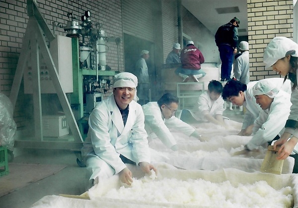來到不久,趕上研究所每年一度的清酒釀造活動。從上到下,所長帶頭,各個科室都參加,還有來自日本各地酒廠的技術人員,大家分成組,從磨米浸米蒸米開始,到制曲糖化發酵,最后過濾得到清酒,入罐貯藏,一個標準化流程下來,一個多星期沒了。所有人都很投入,所有設備都用上了,組間有技術參數評比,大家研習和討論,氛圍輕松隨和,我是第一次知道清酒是這樣釀成的!