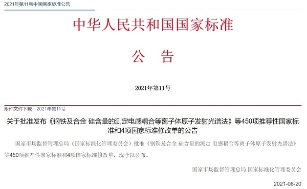 根據中華人民共和國國家標準公告(2021年第11號),國家市場監督管理總局(國家標準化管理委員會)批準《牛肉類、羊肉類罐頭質量通則》等450項推薦性國家標準和4項國家標準修改單。