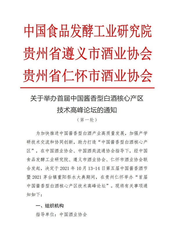 關于舉辦首屆中國醬香型白酒核心產區技術高峰論壇的通知