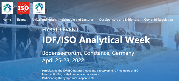 2022年4月25日-28日,由國際乳品聯合會(IDF)和國際標準化組織(ISO)聯合主辦的IDF/ISO分析周會議在德國康斯坦茨順利召開,大會以線上與線下相結合的形式同步舉行直播會議,發布乳品分析方法相關國際標準及前沿技術進展,為全球乳品領域科學家提供技術交流平臺。IDF乳微生物分析方法委員會(SCAMDM)工作會議于北京時間4月28日召開,會議由中國食品院副院長、IDF乳微生物分析方法委員會主席姚粟教授主持,來自15個國家的40余名國際微生物科學家出席會議。