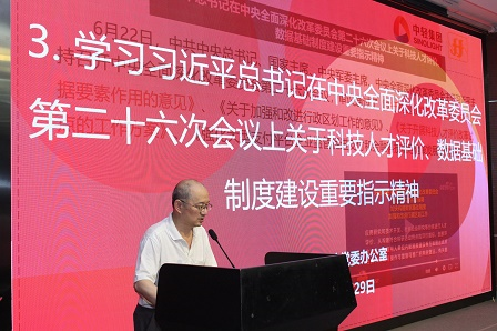 黨委辦公室領(lǐng)學(xué)了習(xí)近平總書記在中央全面深化改革委員會(huì)第二十六次會(huì)議上關(guān)于科技人才評(píng)價(jià)、數(shù)據(jù)基礎(chǔ)制度建設(shè)方面的重要指示精神以及黨章的核心內(nèi)容。