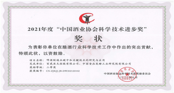 近期,中國(guó)酒業(yè)協(xié)會(huì)召開第六屆理事會(huì)第四次擴(kuò)大會(huì)議。會(huì)上,中國(guó)食品發(fā)酵工業(yè)研究院有限公司聯(lián)合百威亞太控股有限公司《啤酒制造業(yè)碳中和關(guān)鍵技術(shù)的研究與應(yīng)用》項(xiàng)目成果榮獲2021年度中國(guó)酒業(yè)協(xié)會(huì)科學(xué)技術(shù)進(jìn)步二等獎(jiǎng);中國(guó)食品院聯(lián)合北京燕京啤酒股份有限公司、天津科技大學(xué)《小麥啤酒品質(zhì)提升及精準(zhǔn)調(diào)控關(guān)鍵技術(shù)的開發(fā)與應(yīng)用》項(xiàng)目成果榮獲2021年度中國(guó)酒業(yè)協(xié)會(huì)科學(xué)技術(shù)進(jìn)步三等獎(jiǎng)。