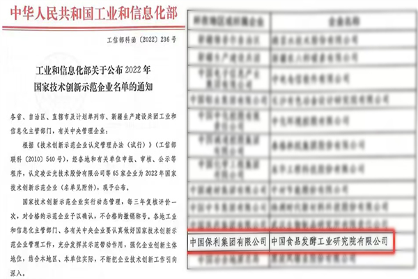 在近期工業和信息化部公布的2022年國家技術創新示范企業認定名單中,保利中輕所屬中國食品發酵工業研究院(簡稱“中國食品院”)憑借在食品行業的自主創新力和市場競爭力被認定為2022年“國家技術創新示范企業”。認定通過全面系統評價,體現出對中國食品院關鍵核心技術攻關及產業化突出成果的高度肯定。