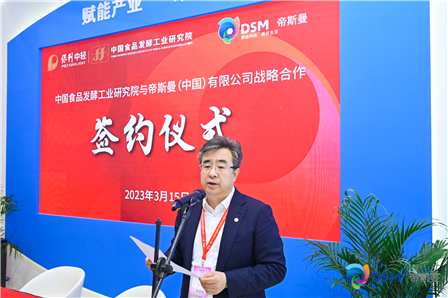展會期間,安勝杰、蔡木易出席中國食品院與帝斯曼(中國)戰略合作簽約儀式,肖丹、郭新光帶隊赴荷蘭皇家帝斯曼中國地區總部和研發中心進行座談交流,并為“營養健康原料標準化聯合研究中心”揭牌。中國食品院與帝斯曼將結合雙方的優勢,不斷完善發酵食品原配料標準制定、評價、推廣與應用體系,推動雙方共贏發展。