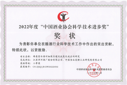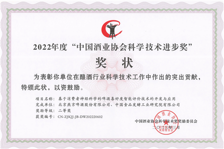 聯合北京燕京啤酒股份有限公司《基于消費者神經科學的啤酒喜好度智能評價技術的開發與應用》、聯合江蘇洋河酒廠股份有限公司《綿柔型白酒對細胞自噬及抗氧化效應的研究》項目成果分別榮獲科學技術進步二等獎。