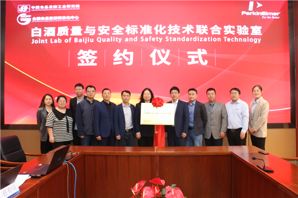 2023年4月25日,中國食品發酵工業研究院有限公司與珀金埃爾默(PE)共建白酒質量與安全標準化技術聯合實驗室在中國食品院舉行簽約儀式。保利中輕總經理助理、中國食品院黨委書記、總經理肖丹,副總經理郭新光,珀金埃爾默(PE)副總裁、亞太區銷售與服務總經理朱兵,亞太區市場營銷總監王海鑒等出席簽約儀式并為聯合實驗室揭牌。該實驗室旨在加強食品院和珀金埃爾默(PE)之間的技術合作,開展白酒食品安全和風味分析標準化技術創新研究。