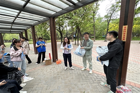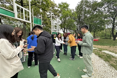 團員青年們熱情洋溢,集體徒步前往公司附近的將府公園。