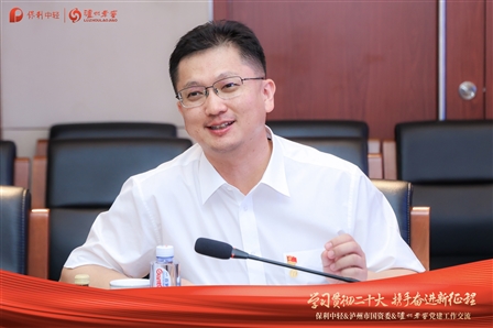 肖金龍對胡琳一行的到來表示歡迎,充分肯定了保利中輕與瀘州老窖股份前期開展業(yè)務(wù)協(xié)同合作取得的成績,并對瀘州市國資委給予的大力支持表示感謝,表示保利中輕將學(xué)習(xí)借鑒瀘州市國資委打造全國黨建調(diào)研基地、瀘州老窖股份打造“踐行初心,釀造幸福”黨建品牌的經(jīng)驗做法,進一步提升保利中輕精益黨建工作水平。希望雙方以本次對接交流為新的起點,深入探索、實踐黨建引領(lǐng)企業(yè)高質(zhì)量發(fā)展的創(chuàng)新舉措,通過強化雙方黨建協(xié)作與交流,進一步深化雙方業(yè)務(wù)協(xié)同,實現(xiàn)共同發(fā)展.
