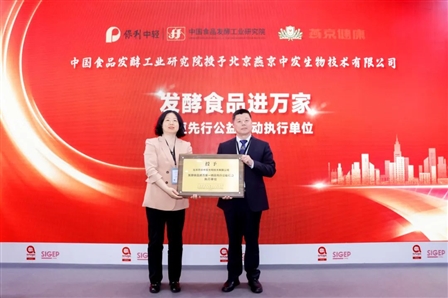 論壇發布了由中國食品院、全國食品與發酵工業信息中心、中國消費品質量安全促進會食品專委會共同發起的“發酵食品進萬家—納豆先行公益行動”的具體內容和計劃,通過研發創新、市場推廣等手段推動以納豆為主的發酵食品市場普及,進一步提高公眾對發酵食品的認識和接受度。肖丹為該公益行動執行單位——北京燕京中發生物技術有限公司授牌。