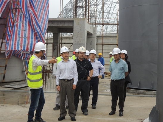 集團公司企業管理部有關人員對大豐英茂糖業項目施工現場及安全管理資料進行了檢查。海誠股份主要領導及有關人員陪同檢查。