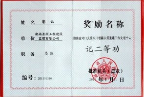 2011年,湖南省政府授予長順項目管理有限公司湖南省對口支援四川理縣援建先進單位的光榮稱號。由長順公司承監三湘大道、商貿中心等項目獲四川天府杯金獎,理縣中學項目獲四川天府杯銀獎。講述者彭云榮獲湖南省政府頒發的二等功勛章和獎狀,并獲邀參加湖南省委省政府領導接見表彰。