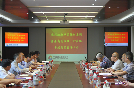 6月4日,保利集團總經理張振高率保利集團總會計師彭碧宏、副總經理朱銘新、副總會計師郭建全、副總經濟師、風險管理中心主任羅德丕、人力資源管理中心主任王珂靈等一行蒞臨中輕集團調研指導工作。中輕集團黨委和經營班子成員、各部門負責人、造紙院領導及有關部門負責人參加了調研和座談。