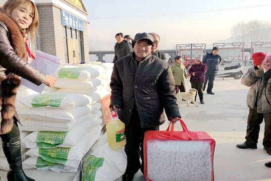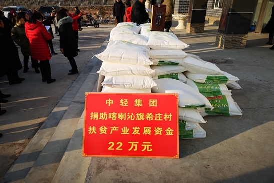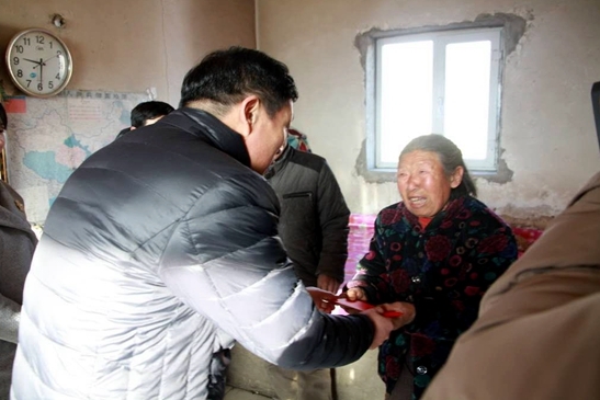 24日清晨,在副旗長遲亞玲等旗有關負責同志陪同下,慰問組赴王爺府鎮(zhèn)希莊村,代表中輕集團向希莊村捐贈產業(yè)扶貧資金22萬元,并為70歲以上老人送上米、面、油和保暖棉被等物資。王珂靈在寒冬中發(fā)表熱情洋溢的講話,傳遞中輕集團黨委的深情厚誼,溫暖了貧困群眾的心田。