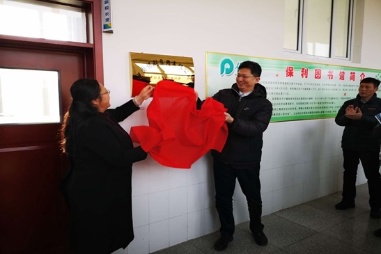 隨后,慰問組來到王爺府鎮(zhèn)蒙古族學校,參加保利集團·中輕集團“保利愛心圖書館”揭牌儀式。中輕集團總經理助理、黨委辦公室主任肖金龍代表集團公司為圖書館揭牌,并捐贈價值1萬元的閱覽桌椅和4000冊愛心圖書。