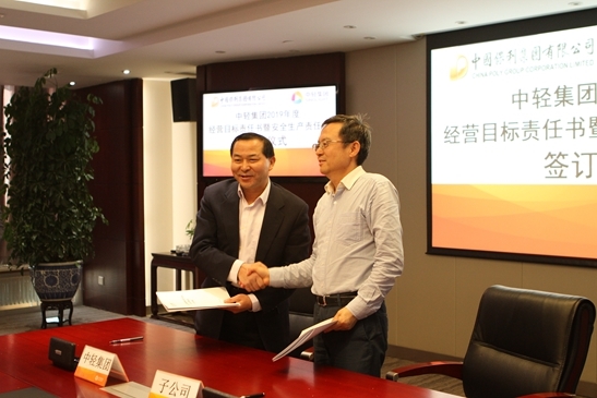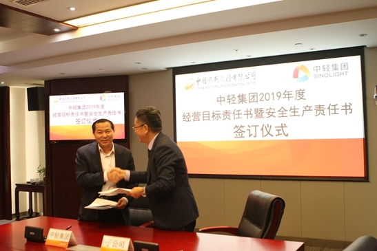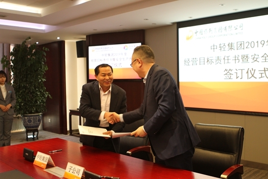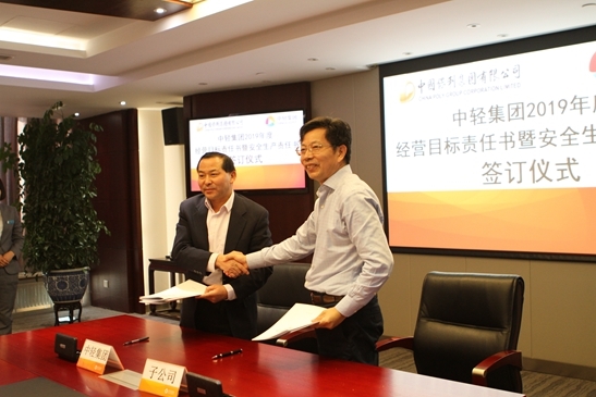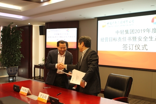 4月10日下午,中輕集團在中輕大廈舉行2019年度經營目標責任書暨安全生產責任書簽訂儀式。集團公司領導、總部各部室負責人、子公司主要負責人出席簽字儀式,黨委委員、副總經理任建平主持簽字儀式。