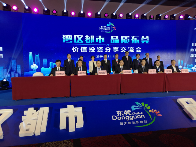 11月11日,由東莞市委市政府主辦的“灣區都市 品質東莞”價值投資分享交流會在北京舉行。保利集團副總經理、保利發展董事長宋廣菊,保利集團總經理助理、中輕集團董事長張萬順,保利集團總經理助理、中絲集團總經理王波等出席簽約儀式。中輕集團副總經理蔡木易出席簽約儀式并代表中輕集團簽署戰略合作框架協議。