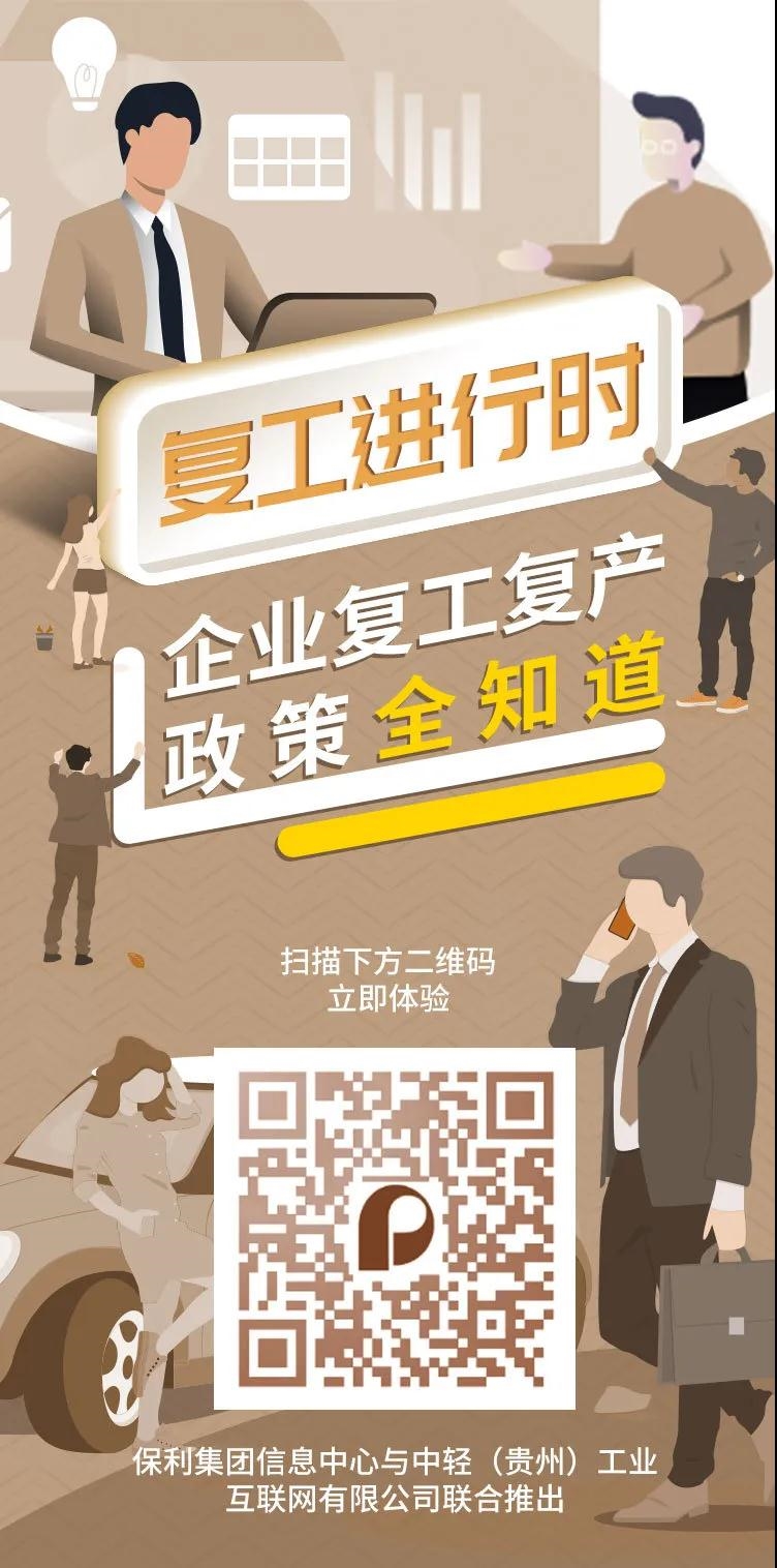 保利集團深入貫徹落實關于統籌推進疫情防控和經濟社會發展工作部署會議精神,在穩抓疫情防控、全力推進集團內部復工復產的同時,充分發揮央企主力軍的作用,由保利集團信息中心與中輕(貴州)工業互聯網有限公司聯合推出復工復產政策查詢服務,為各行業企業、群眾全面了解疫情防控、復工復產政策提供信息支持。