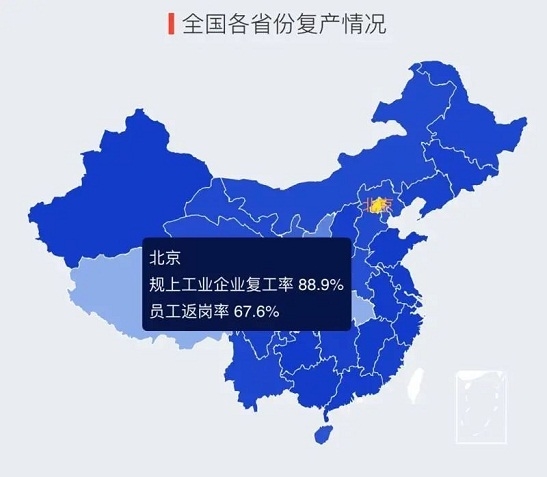 此外,小程序在首頁(yè)展示了收集到的各省份以及輕工各行業(yè)整體復(fù)工情況數(shù)據(jù),方便企業(yè)增進(jìn)對(duì)行業(yè)的直觀了解,加深對(duì)行業(yè)的深度認(rèn)識(shí),從而對(duì)企業(yè)自身有更加明晰的判斷。