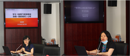 辦公室主任陳薈欞圍繞徐念沙書記黨課和《使用7S框架建設協調一致的組織》課程內容,結合中輕集團宣傳冊制訂工作分享學習心得;總經理助理、企業發展部主任肖丹圍繞徐念沙書記黨課和《使用PLAN法提升執行力》課程內容,結合中輕集團戰略規劃編制工作與大家進行充分交流。