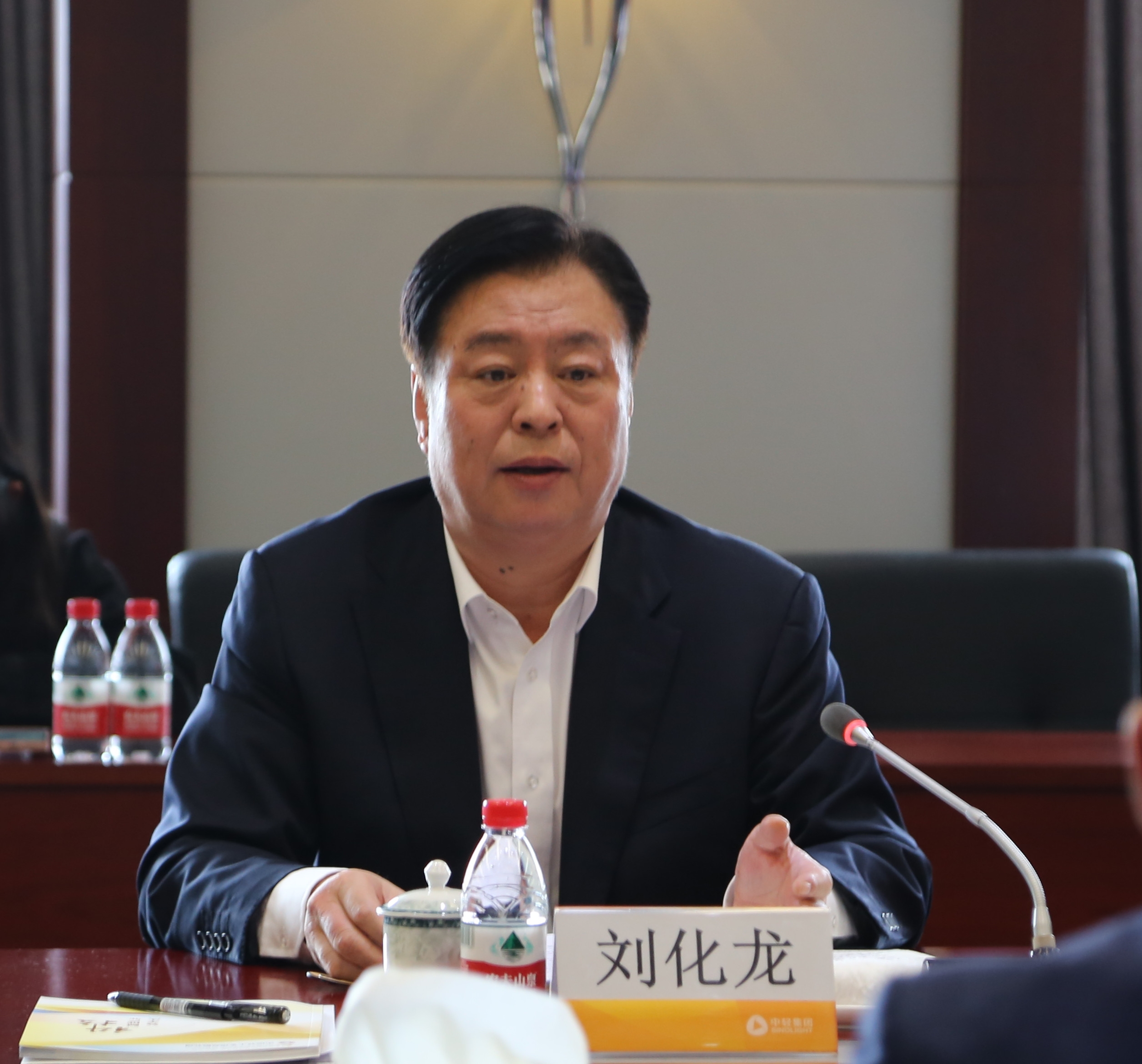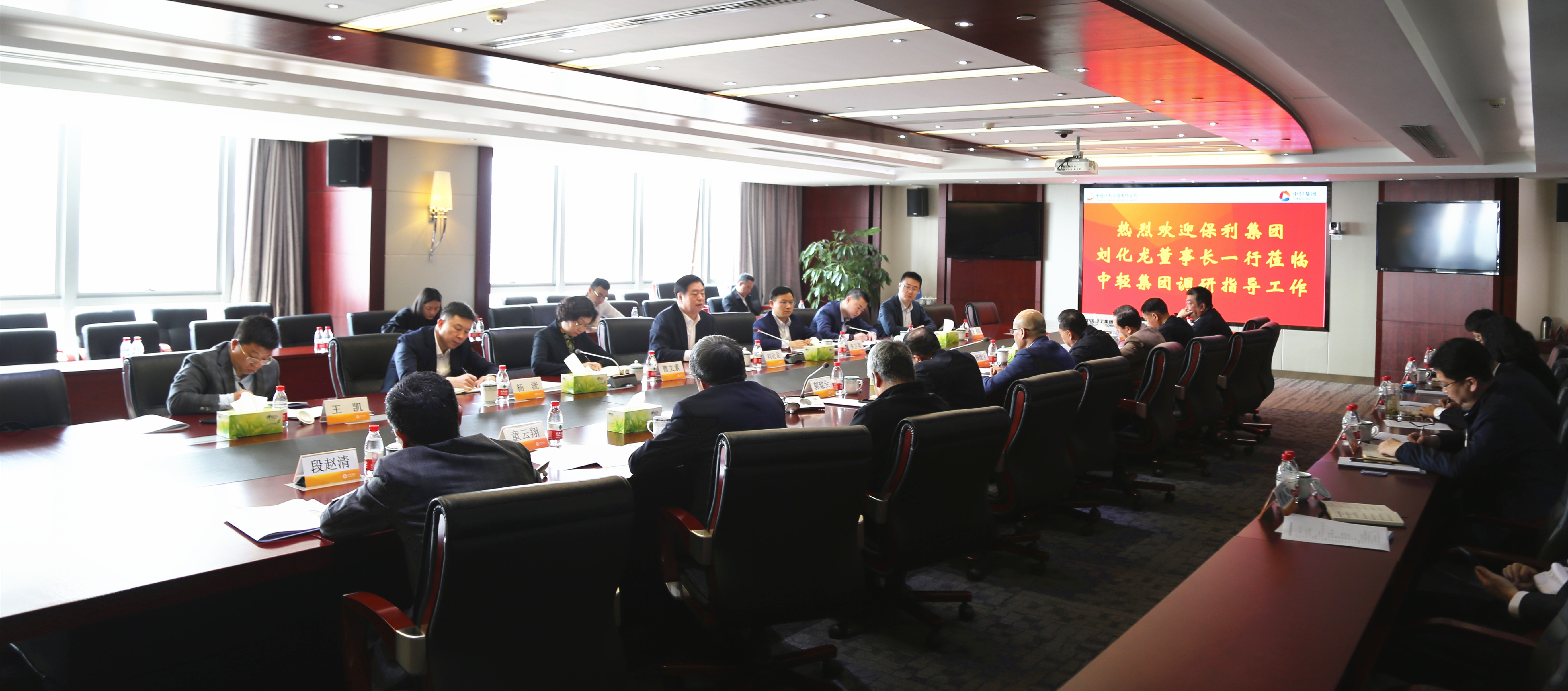 4月7日,集團公司黨委書記、董事長劉化龍一行赴中輕集團開展調研,與中輕集團領導班子座談。中輕集團黨委書記、董事長張萬順主持座談會并作工作匯報。