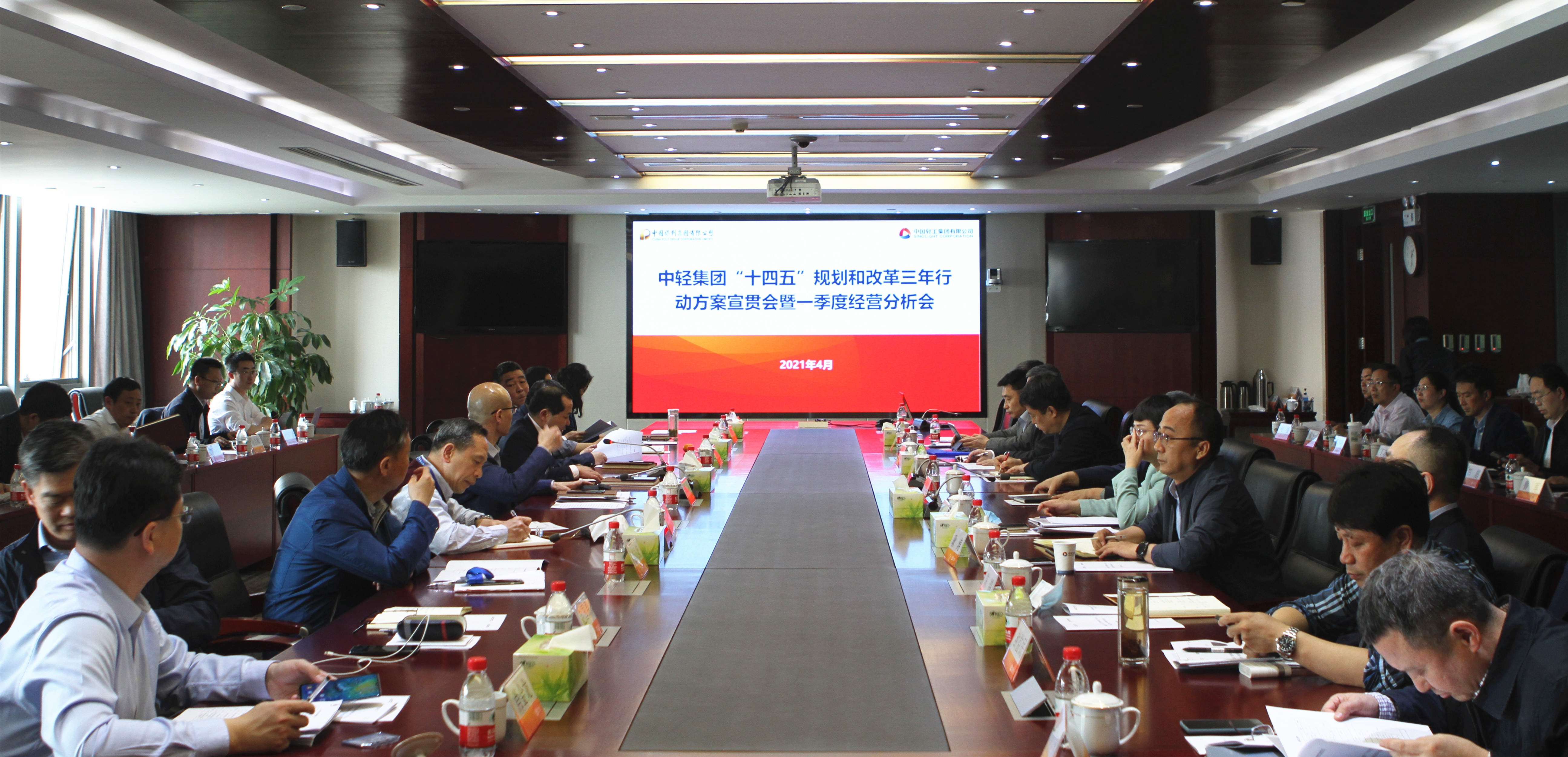 2021年4月25日,中輕集團在京組織召開“十四五”規劃和改革三年行動方案宣貫會暨一季度經營分析會。中輕集團領導班子、總部各部室負責人、子公司主要領導和相關工作分管領導及相關部門負責人參加會議。
