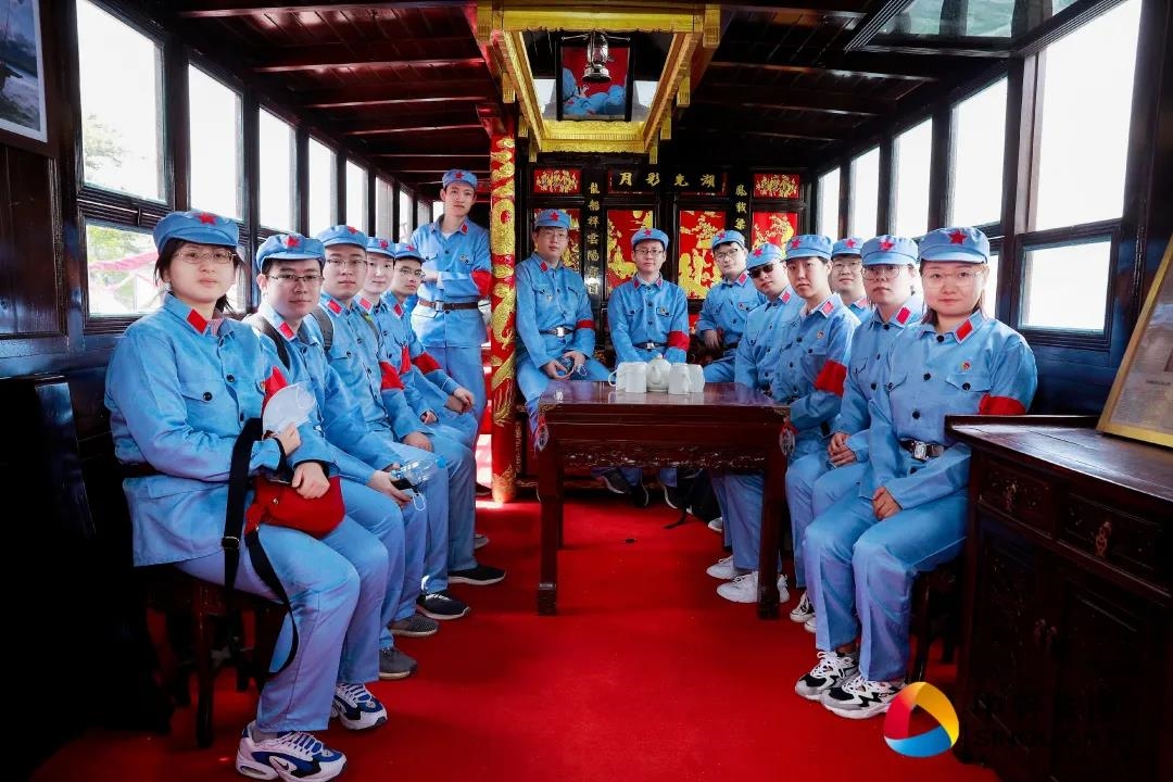 青年們登上紅船,重溫了百年之前那艱苦又光輝的歲月,親身體驗(yàn)了中國共產(chǎn)黨建黨的偉大歷史時(shí)刻。中國共產(chǎn)黨在這里誕生,中國革命在這里揚(yáng)帆起航,從這里走向一個(gè)又一個(gè)勝利,大家低聲喃語:“全世界無產(chǎn)者聯(lián)合起來”,但內(nèi)心洶涌澎湃。