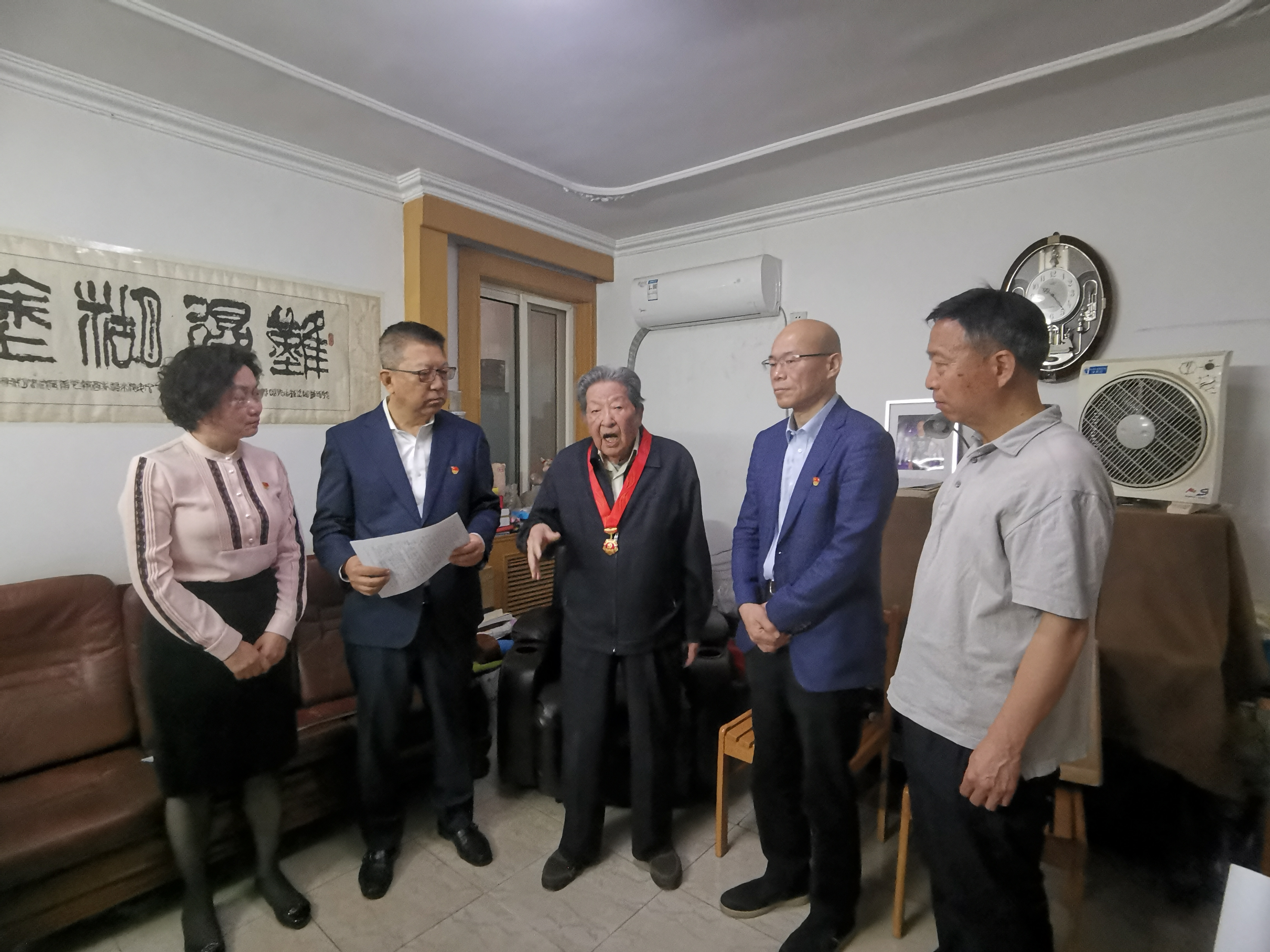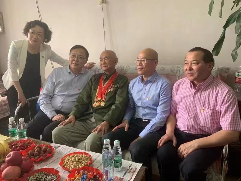 6月18日上午,劉軍才、張萬順、郭建全、曹文素一行前往73年黨齡的趙金生老先生家中慰問。1948年,趙老在東北民主聯軍六隊警衛營行軍舟戰斗中立大功一次;1949年,在四野43軍司令部四連南下行軍中立功一次;建國后,遠赴朝鮮參加抗美援朝戰爭。劉軍才一行仔細觀摩趙老獲得的多枚紀念章,對他為黨的解放事業和新中國建設所做的貢獻表示感謝。