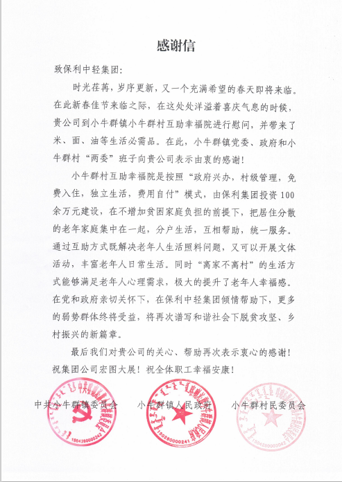 近日,為充分體現黨和國家以及央企對定點幫扶地區的人文關懷,保利中輕在內蒙古喀喇沁旗開展“振興喀喇沁·關心促和諧”春節慰問活動。