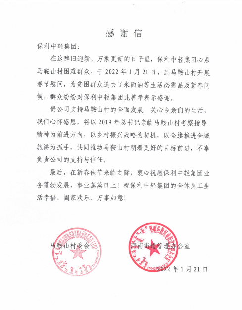 2022年,保利中輕將進一步貫徹落實好中央有關精神,扎實推進鞏固拓展脫貧攻堅成果同鄉村振興有效銜接,踐行央企社會責任,以優異的幫扶成果向黨的二十大獻禮。