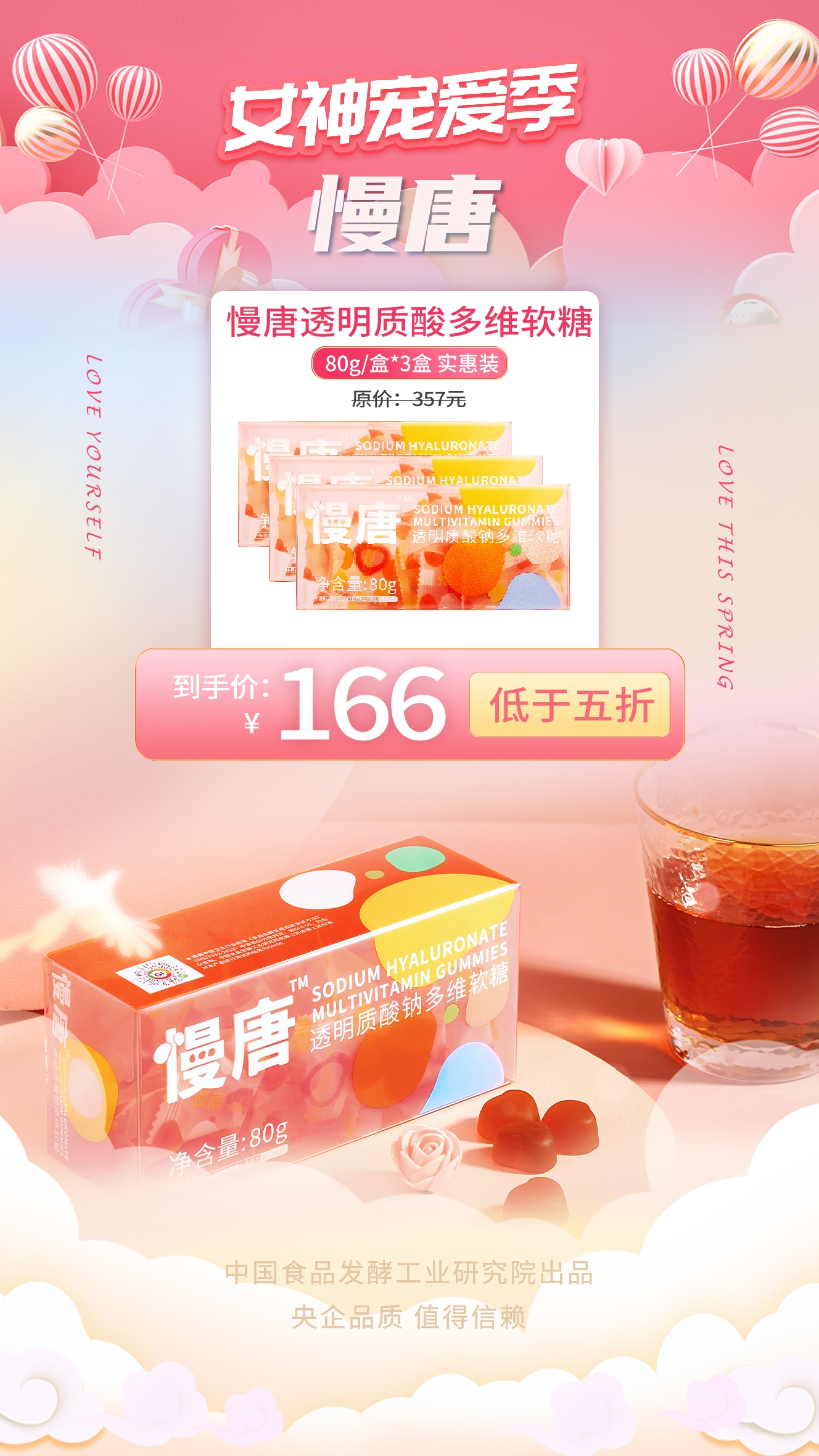 保利中輕所屬中國食品發酵工業研究院自主開發終端產品“慢唐”透明質酸鈉多維軟糖,能有效控制糖分,緩解皮膚老化,受到關注愛美、減肥人群的青睞。