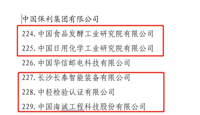 日前,國務院國資委改革辦發布了“科改示范企業”名單。保利中輕所屬中國食品發酵工業研究院、中國日用化學工業研究院、長沙長泰智能裝備有限公司、中輕檢驗認證有限公司、中國海誠工程科技股份有限公司榜上有名。