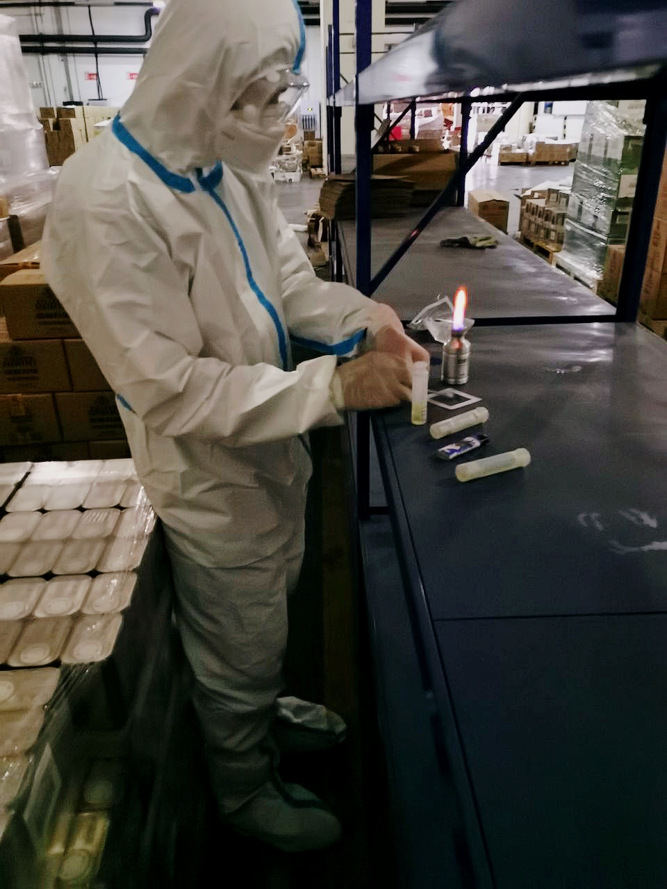 與此同時,中輕檢驗普研標準想客戶所想,急客戶所急,疫情期間全力推出全方位消殺服務。5月26日,為保證某食品企業產品順利出貨,中輕檢驗普研標準為其提供專業的現場消殺服務。