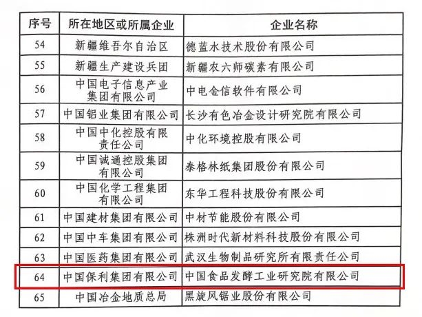 在黨的二十大勝利閉幕不久,工業和信息化部公布了2022年國家技術創新示范企業認定名單,全國有65家企業入選,保利中輕所屬中國食品發酵工業研究院憑借在食品行業的自主創新力和市場競爭力登上榜單,被認定為2022年“國家技術創新示范企業”。