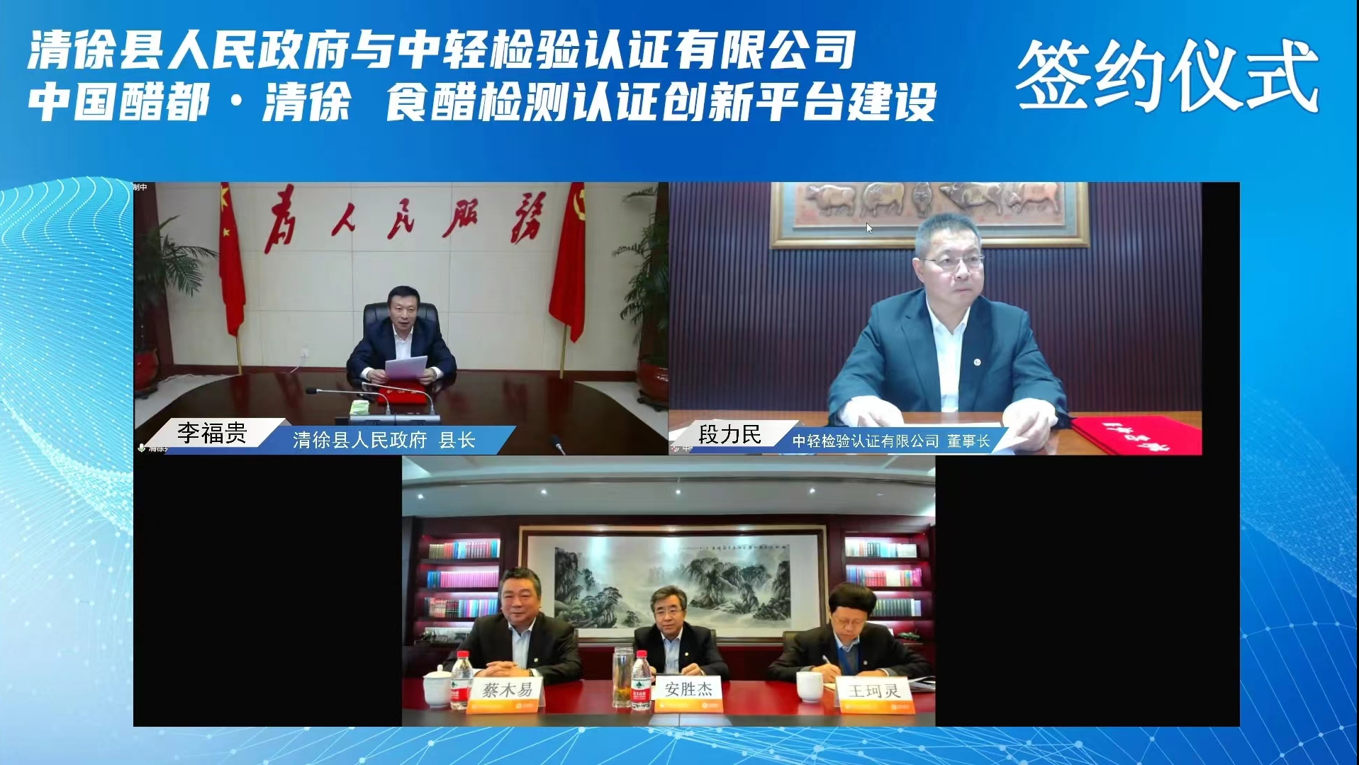 為進一步落實習近平總書記在黨的二十大報告中提出的“必須堅持科技是第一生產力、人才是第一資源、創新是第一動力,深入實施科教興國戰略、人才強國戰略、創新驅動發展戰略,開辟發展新領域新賽道,不斷塑造發展新動能新優勢。” 11月11日,保利中輕所屬中輕檢驗與山西省太原市清徐縣人民政府以線上“云簽約”形式舉行食醋檢測認證創新平臺合作項目簽約儀式。保利集團總經理助理,保利中輕黨委書記、董事長安勝杰;保利中輕黨委副書記、總經理王珂靈,副總經理蔡木易出席簽約儀式。