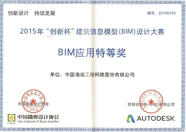 2012年,中國海誠中標當時國內最大的主題樂園項目,承擔了超過園區40%面積的設計任務,設計團隊大膽創新,改變常規的設計經驗和工作習慣,采用三維圖形進行仿真模擬,利用BIM技術防止各個專業間因為“打架”而造成的設計變更,有效節約了工程造價 。憑借BIM在該項目中的出色應用,獲得中國2015“創新杯”建筑信息模型(BIM)應用設計大賽特等獎、世界主題娛樂協會(TEA)頒發的“杰出成就獎—景點”獎杯。