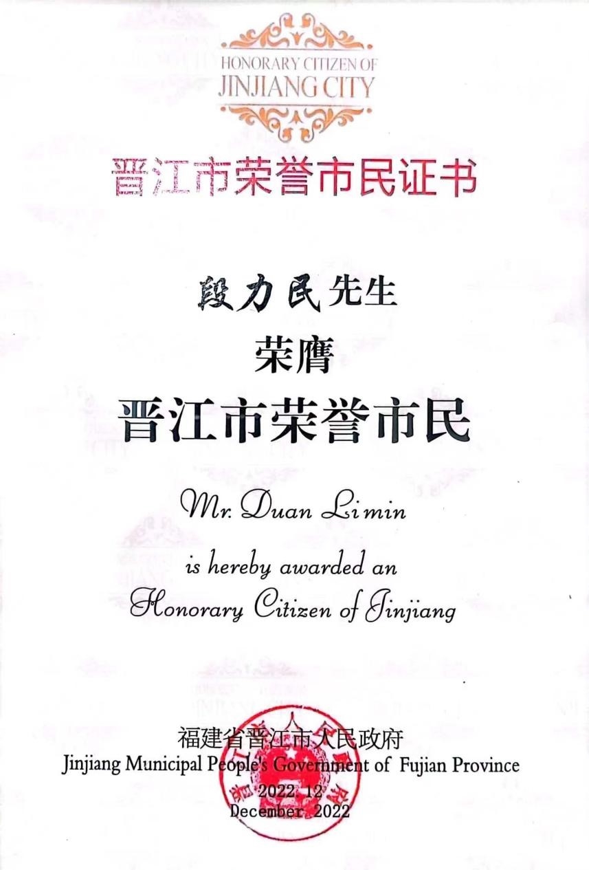 近日,福建省晉江市人民政府公布2022年度“晉江市榮譽(yù)市民”稱號(hào)人選8人,保利中輕所屬中國皮革制鞋研究院黨委書記、總經(jīng)理,中國皮革制鞋院晉江公司董事長段力民榜上有名,被授予“晉江市榮譽(yù)市民”稱號(hào)。