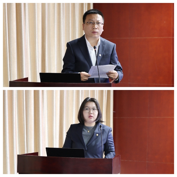 運(yùn)營(yíng)管理部主任杜海明和戰(zhàn)略投資部高級(jí)經(jīng)理曾斌作為新任職干部代表作表態(tài)發(fā)言。