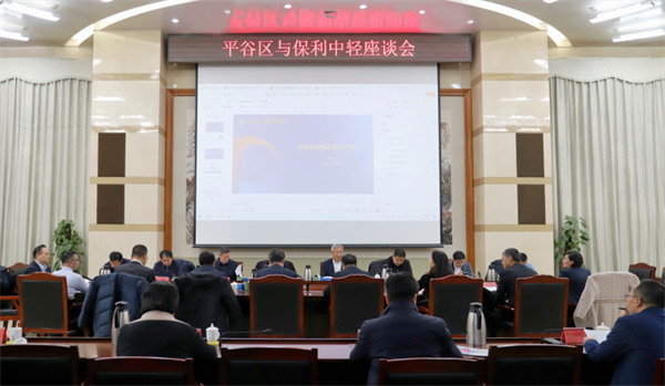 12月2日,保利集團總經理助理,保利中輕黨委書記、董事長安勝杰一行與北京市平谷區委書記唐海龍,區委副書記、區長狄濤等座談交流。保利中輕副總經理,中國海誠黨委書記、董事長趙國昂;保利中輕副總經理張曦,中國海誠、中輕長泰相關負責人,平谷區政府黨組成員彭石,區政府相關部門負責人參加座談。