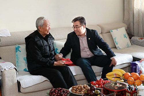 安勝杰一行來到84歲高齡的劉義生家中,表達國資委黨委、保利集團黨委和保利中輕黨委對劉老的親切問候,并向劉老致以新春祝福,祝愿他健康長壽,多喜樂、常安寧。