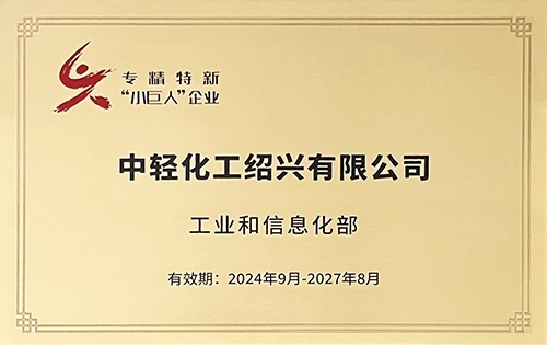 近日,中輕日化所屬中輕化工紹興有限公司(簡稱“中輕紹化”)成功獲批國家工業和信息化部專精特新“小巨人”企業稱號。這是對中輕紹化堅持走專業化、精細化、特色化、新穎化發展道路的充分肯定,標志著其在技術創新、市場競爭力和行業影響力方面邁上新臺階。