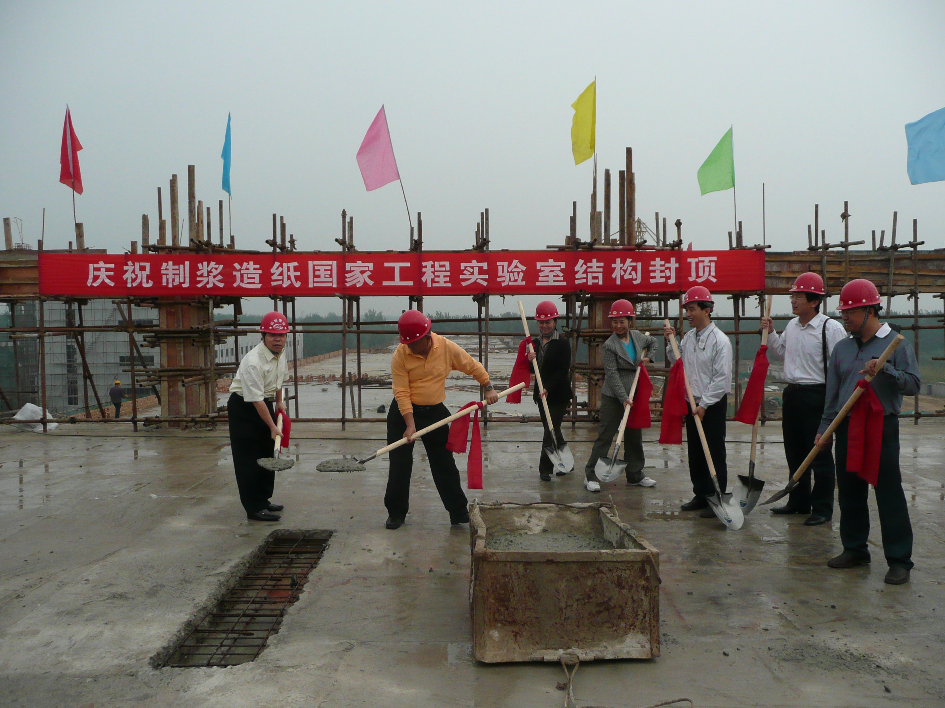 9月26日,中國制漿造紙研究院制漿造紙國家工程實驗室項目主體結(jié)構(gòu)封頂儀式在河北省廊坊市舉行,陳鄂生總經(jīng)理、曹振雷副總經(jīng)理出席了該儀式。